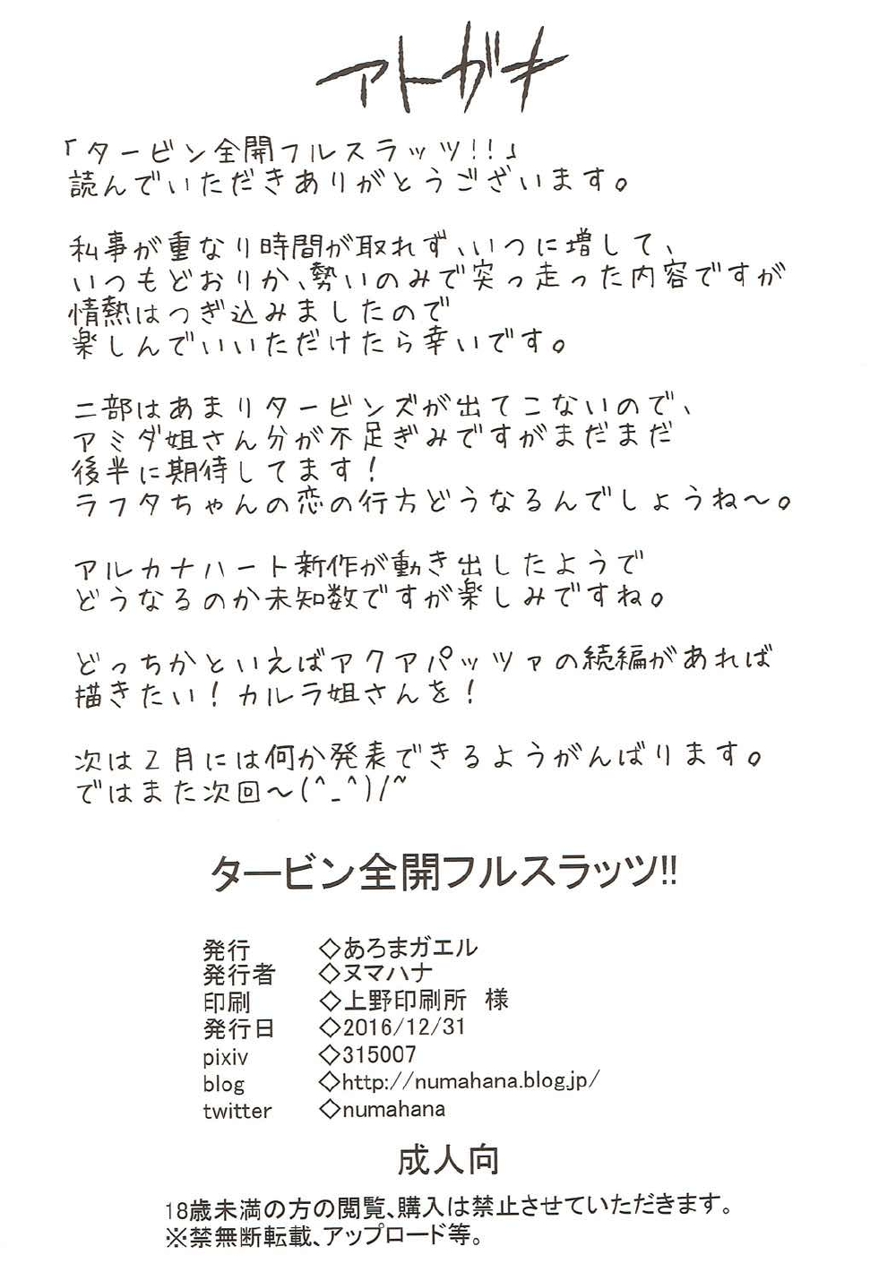 2016年冬コミ(C91)